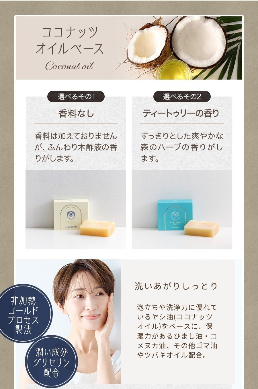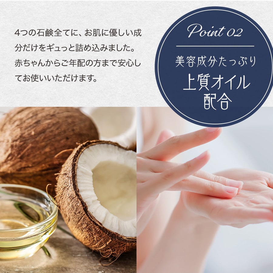 ※ココナッツアレルギーの方はヤシ油ベース石鹸はお使いいただけません。