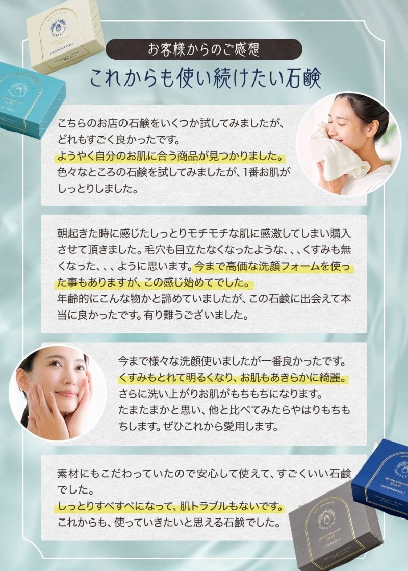 ※ココナッツアレルギーの方はヤシ油ベース石鹸はお使いいただけません。